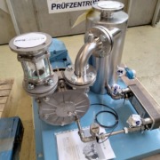 Das Herz der Anlage ist eine SPECK Flüssigkeitsring-Vakuumpumpe Type V255-65, 180 m3/h Förderleistung und einem 5,5 kW Motor. Die produktberührten Anlagenteile sind aus hochwertigem Edelstahl 1.4571 und 1.4581 gefertigt.